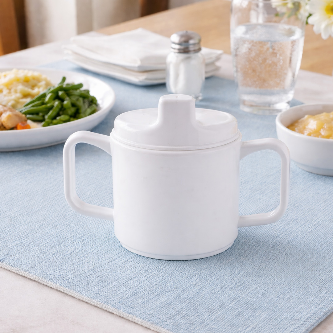 Our 2 Handled Cup with Sippy Spout is thoughtfully designed to support safer, more comfortable drinking for people in assisted living, care homes, hospitals, and at home.