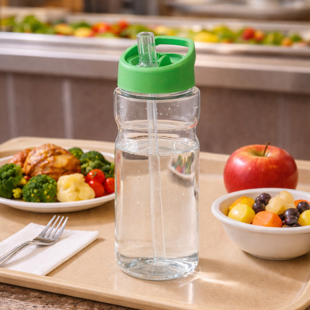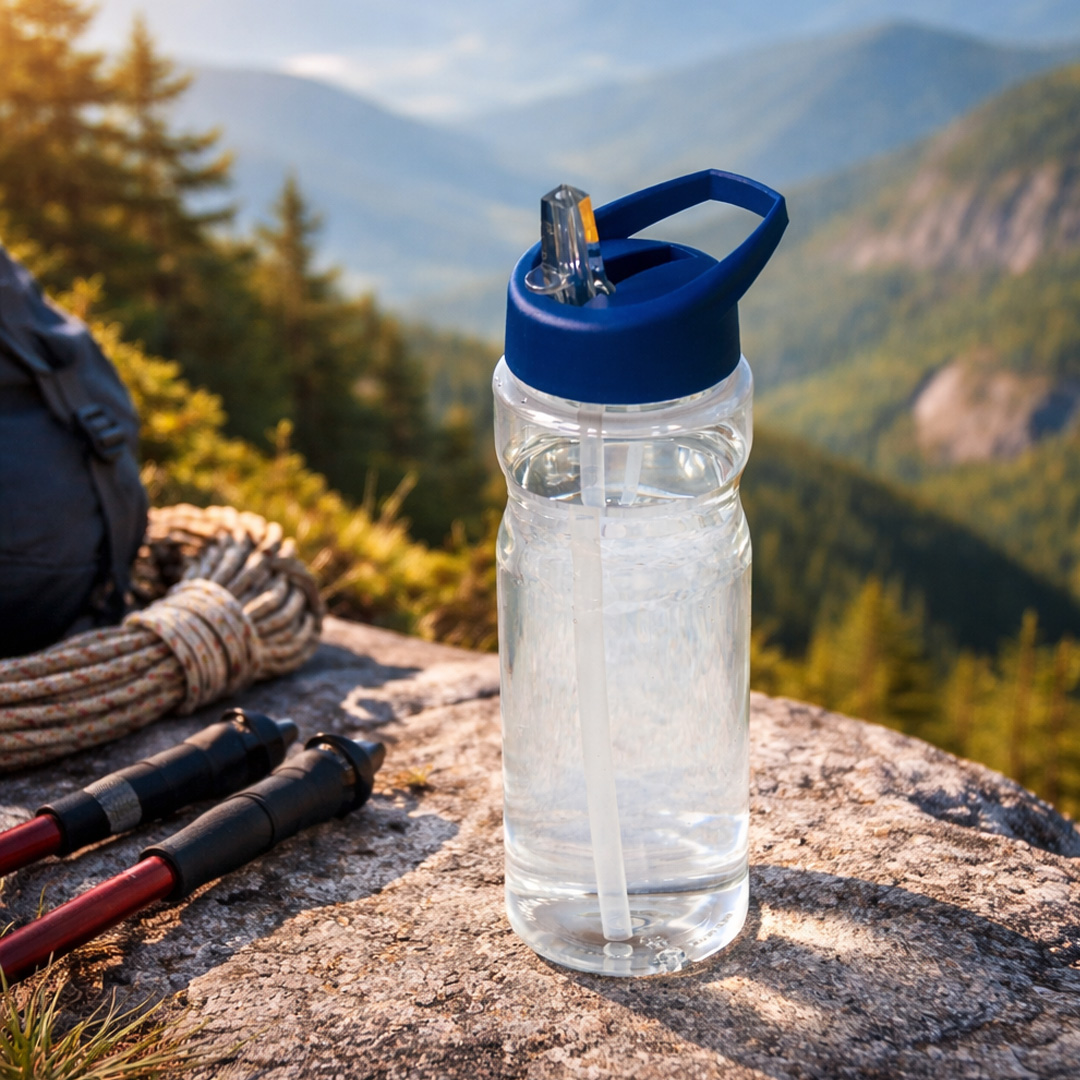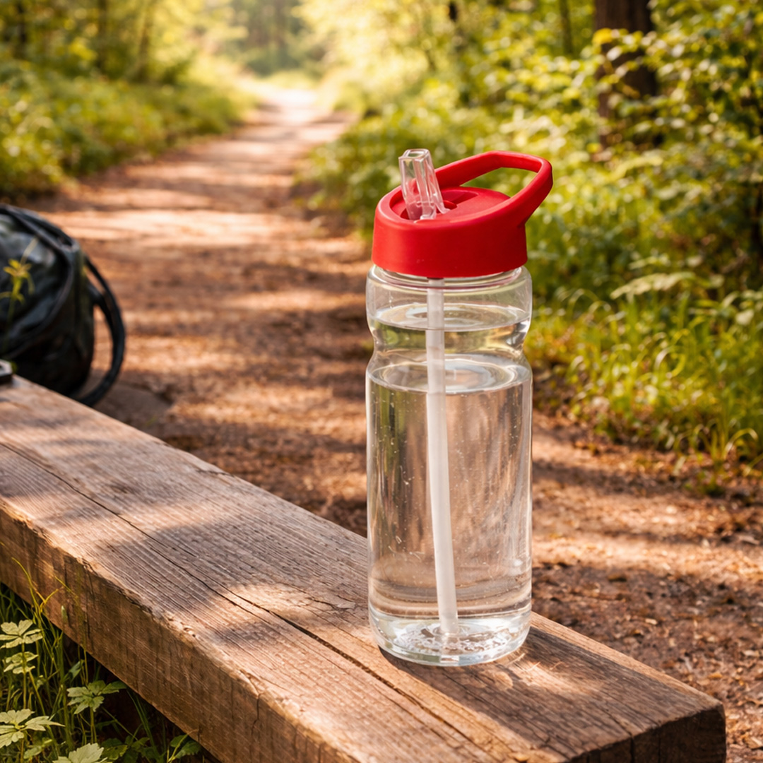Introducing our clear copolyester water bottle with straw, featuring vibrant polypropylene spout for the perfect hydration solution on the go.