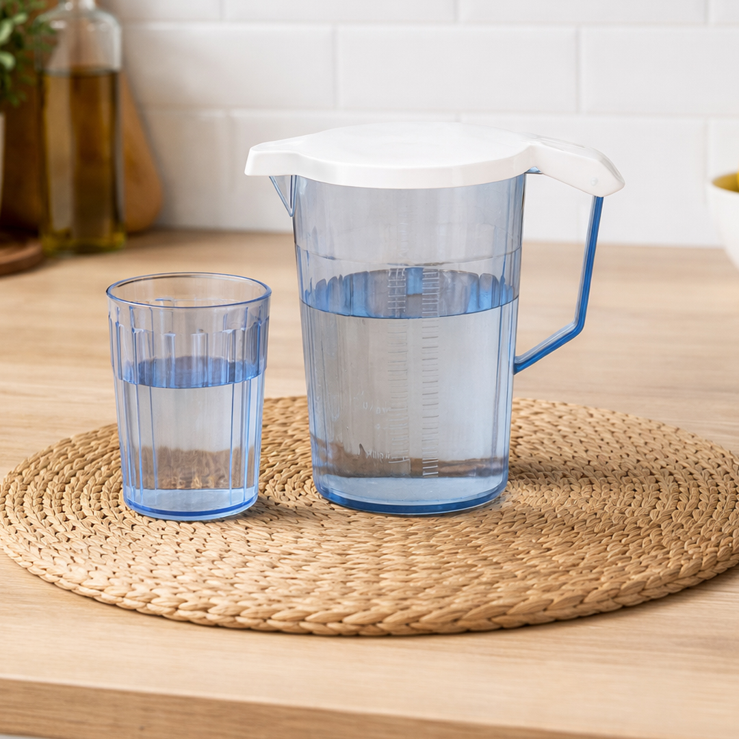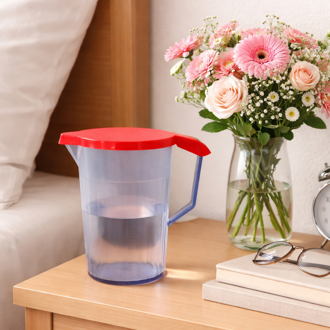 Introducing our Antibacterial 750ml Plastic Jug, available with a choice of three vibrant coloured lids: red, blue, and white. This versatile jug is perfect for serving both chilled and hot drinks.