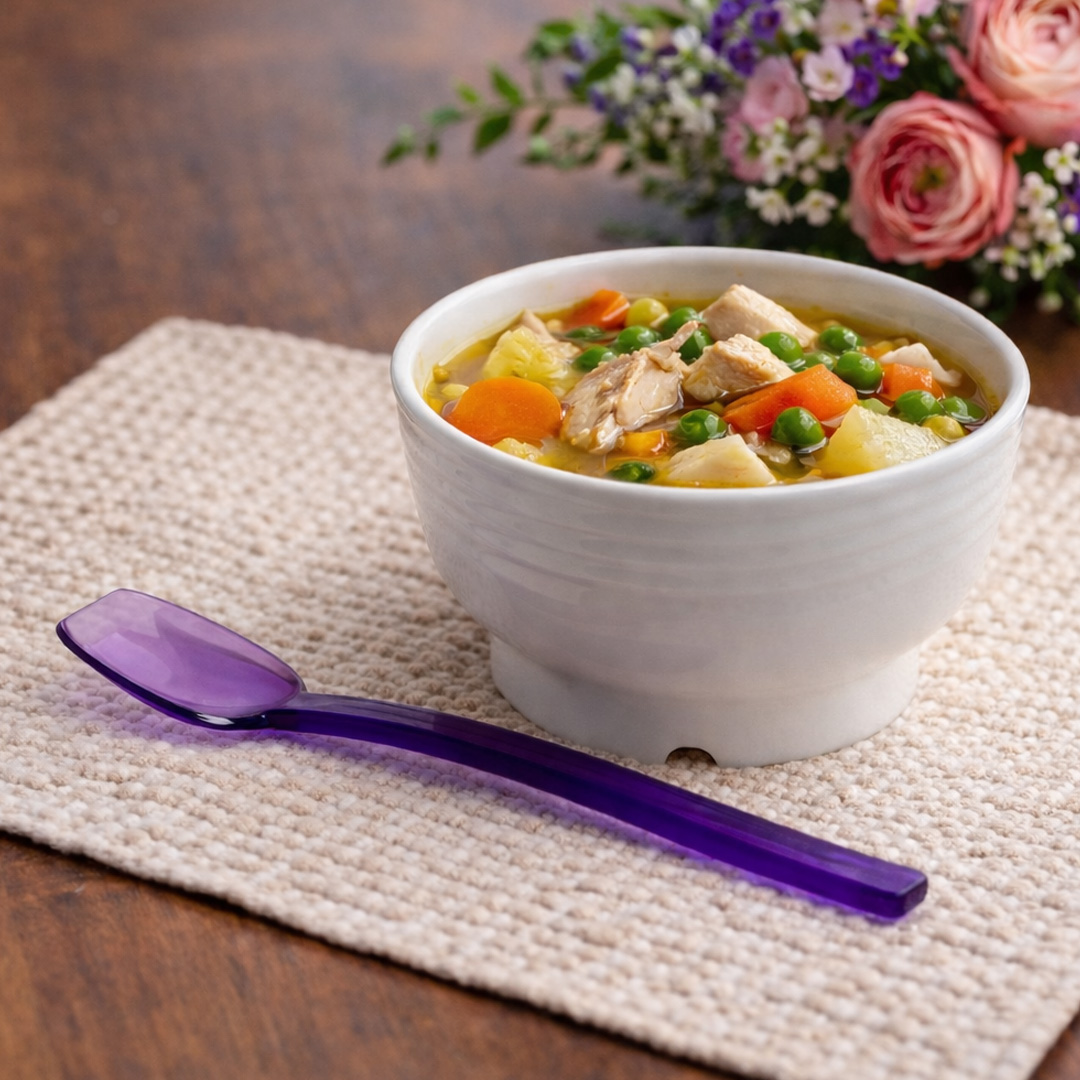 Manufactured from high-quality copolyester, these feeding spoons are extremely lightweight, reducing hand fatigue for both users and carers. The material is virtually unbreakable, meaning the spoons will not shatter or splinter—an important safety feature in care settings, dementia care, and environments supporting children or vulnerable adults.