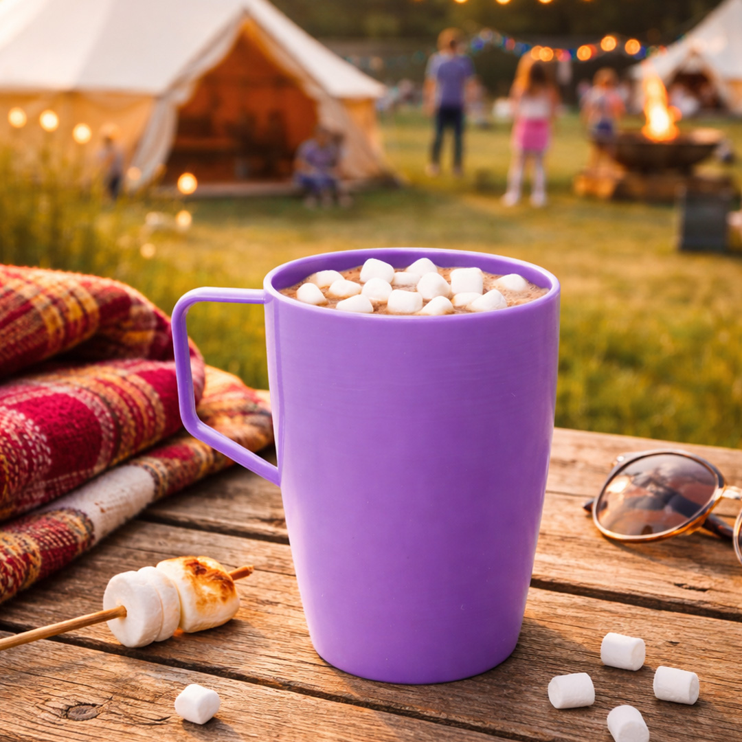 Designed to coordinate effortlessly with other items in the camping range, these reusable camping mugs come in five vibrant colours—perfect for complementing your outdoor gear or picnic setup. The ergonomic handled design ensures a secure and comfortable grip, even in outdoor conditions. The slim handle is also ideal for children, making these family-friendly camping cups perfect for both kids and adults.
